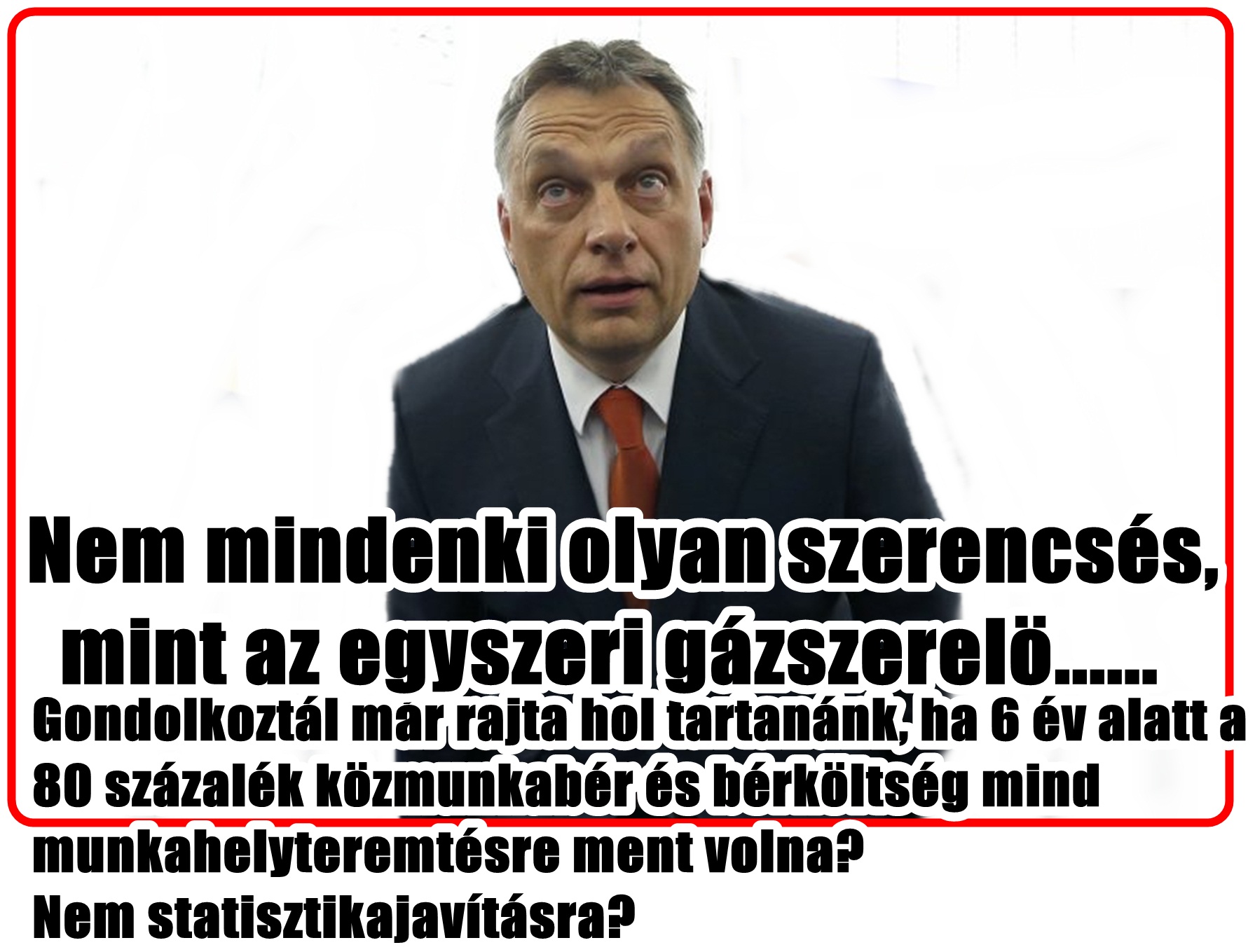 Te! Mi lenne, ha ezt fordítanád munkahelyteremtésre? Gondolkoztál már rajta hol tartanánk, ha 6 év alatt a 80 százalék közmunkabér és bérköltség mind munkahelyteremtésre ment volna? Nem statisztikajavításra?